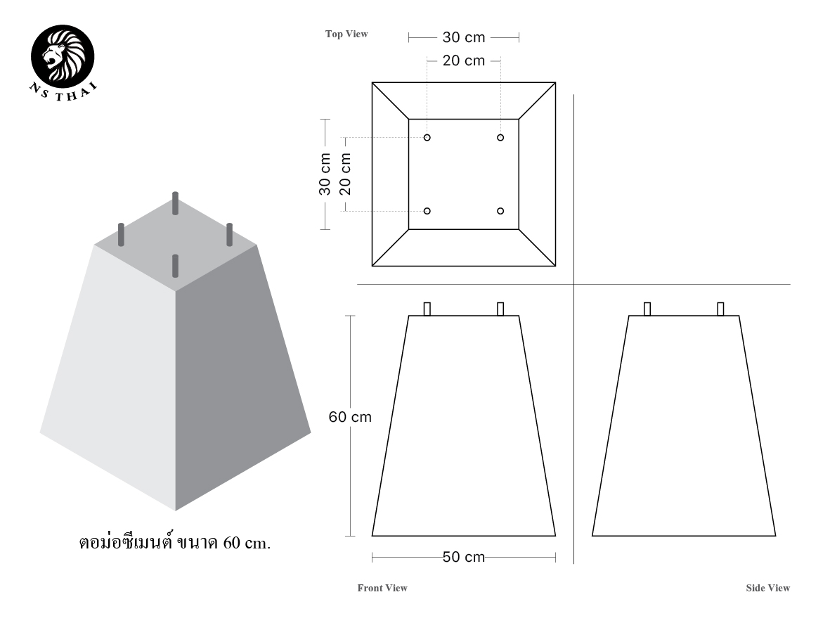 | ตอม่อ 30×50×60 cm. | 30 cm. | 50 cm. | 60 cm. | 20 cm. | 200-210 kg. | 1,800 |