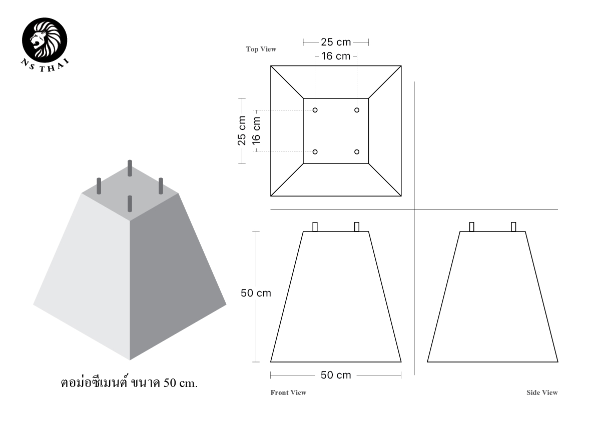 | ตอม่อ 25×50×50 cm. | 25 cm. | 50 cm. | 50 cm. | 16 cm. | 140-150 kg. | 1,700 |