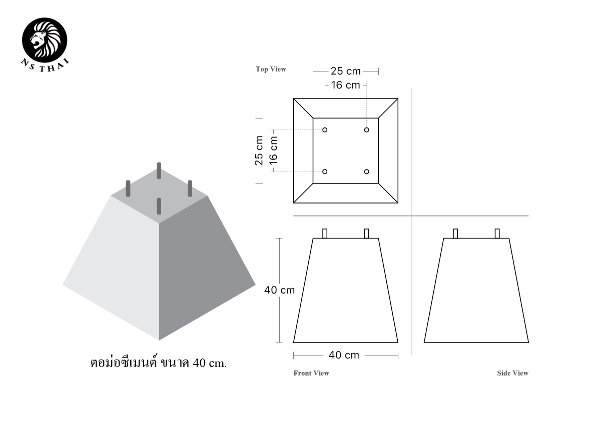 | ตอม่อ 25×40×40 cm. | 25 cm. | 40 cm. | 40 cm. | 16 cm. | 90-100 kg. | 1,600 |