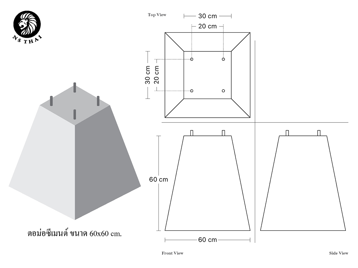 | ตอม่อ 30×60×60 cm. | 30 cm. | 60 cm. | 60 cm. | 20 cm. | 270-280 kg. | 2,000 |