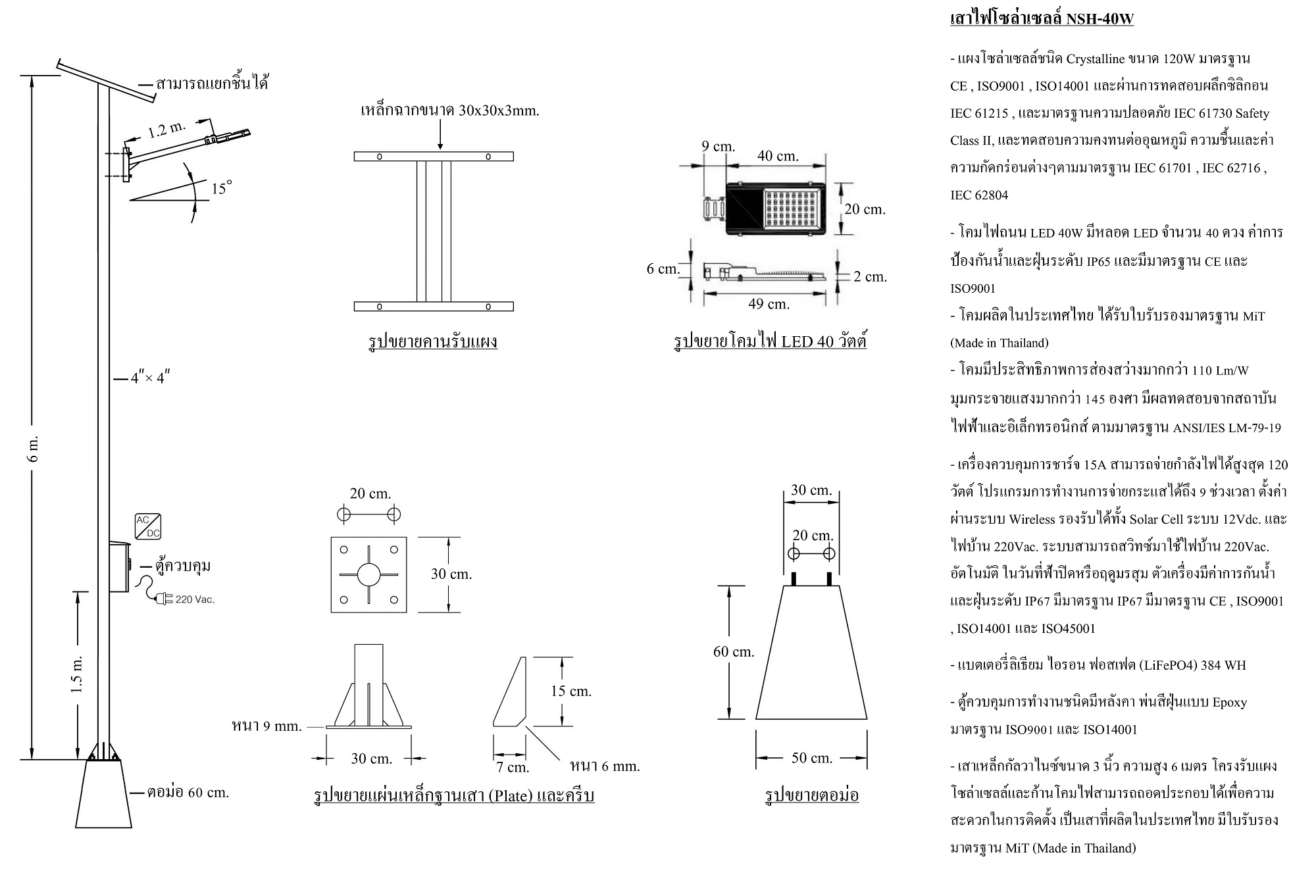 เสาไฟโซล่าเซลล์แบบงานสเปคแยกตู้คอนโทรล รุ่นที่ขายดีที่สุดรุ่นนึง คุณภาพระดับ A+ บำรุงรักษาง่าย เป็นรุ่นยอดนิยมตลอดกาลเหมาะกับงานทางหลวง นิคมอุตฯ หมู่บ้านจัดสรรระดับไฮเอนด์